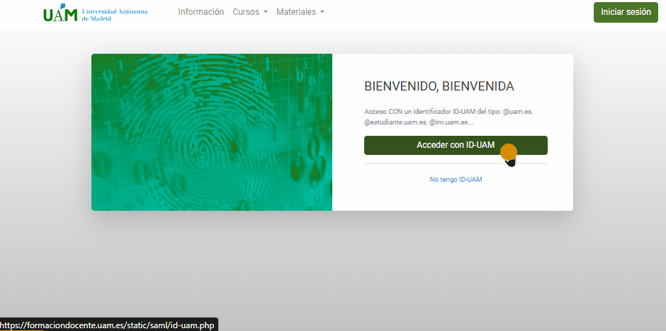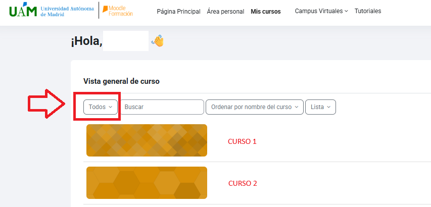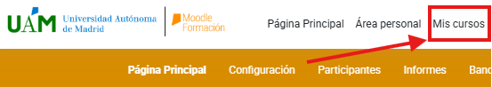 Si ya te matriculaste sólo tienes que loguearte en Moodle con tu IDUAM y buscar en el menú superior "Mis cursos"