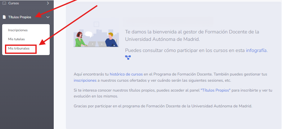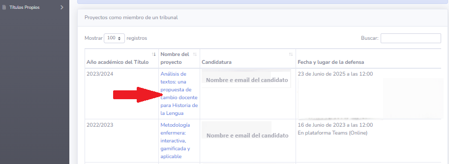 - Pinchar sobre el menú de la izquierda Títulos Propios--Mis tribunales