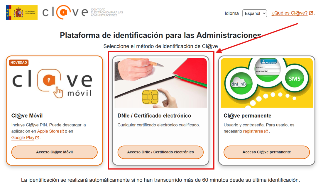 Si eres externo accede con Clave con tu DNI o Certificado Electrónico: