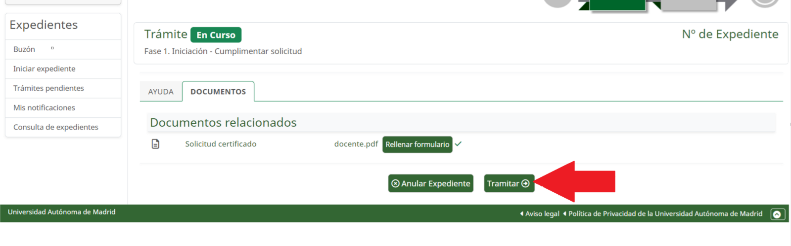 - Pincha en la pestaña "Documentos" el botón "Rellenar formulario".